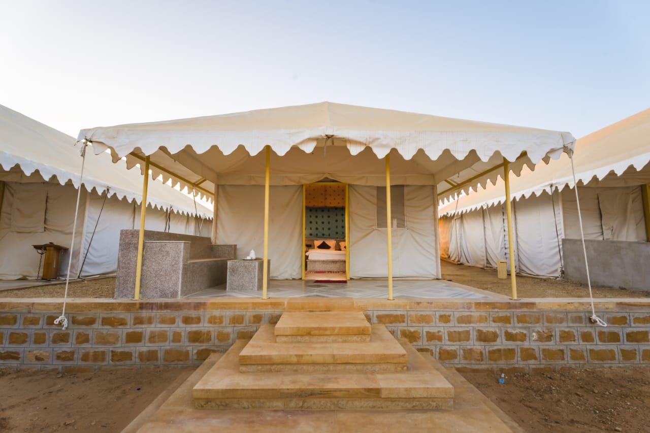 Accommodation in Swiss Tents is something that people come to Jaisalmer for. Our Deluxe Swiss Tents are very spacious and has attached toilet and bathroom. These Swiss tents demonstrate the skills and designs of the local handicrafts combined with the best and most modern amenities.